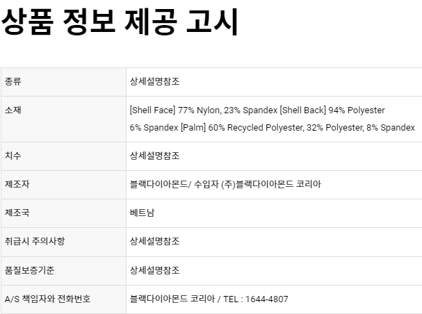- PFC free DWR 및 부드러운 플리스 백커가 적용된 3레이어 스트레치 소프트쉘 장갑